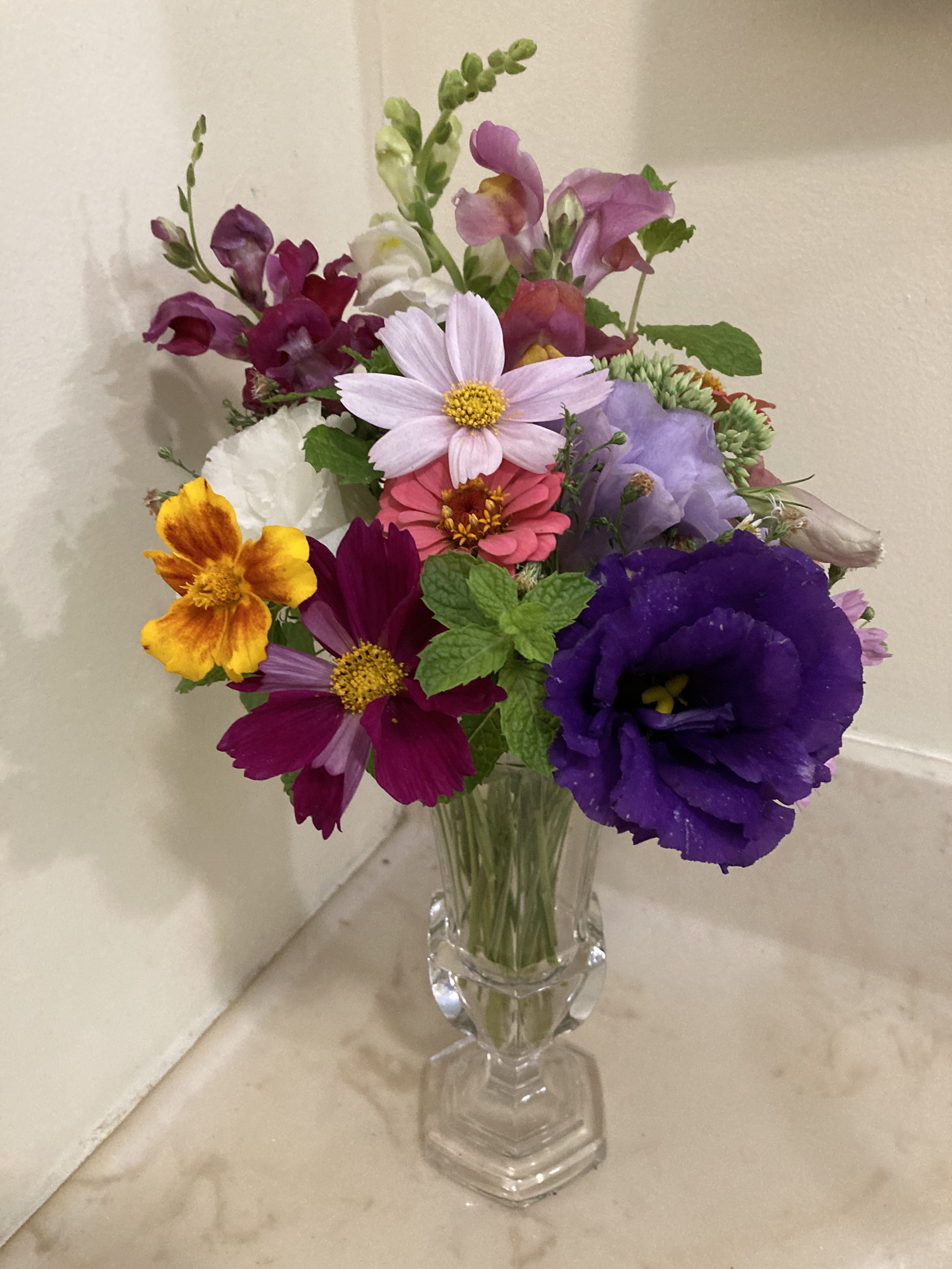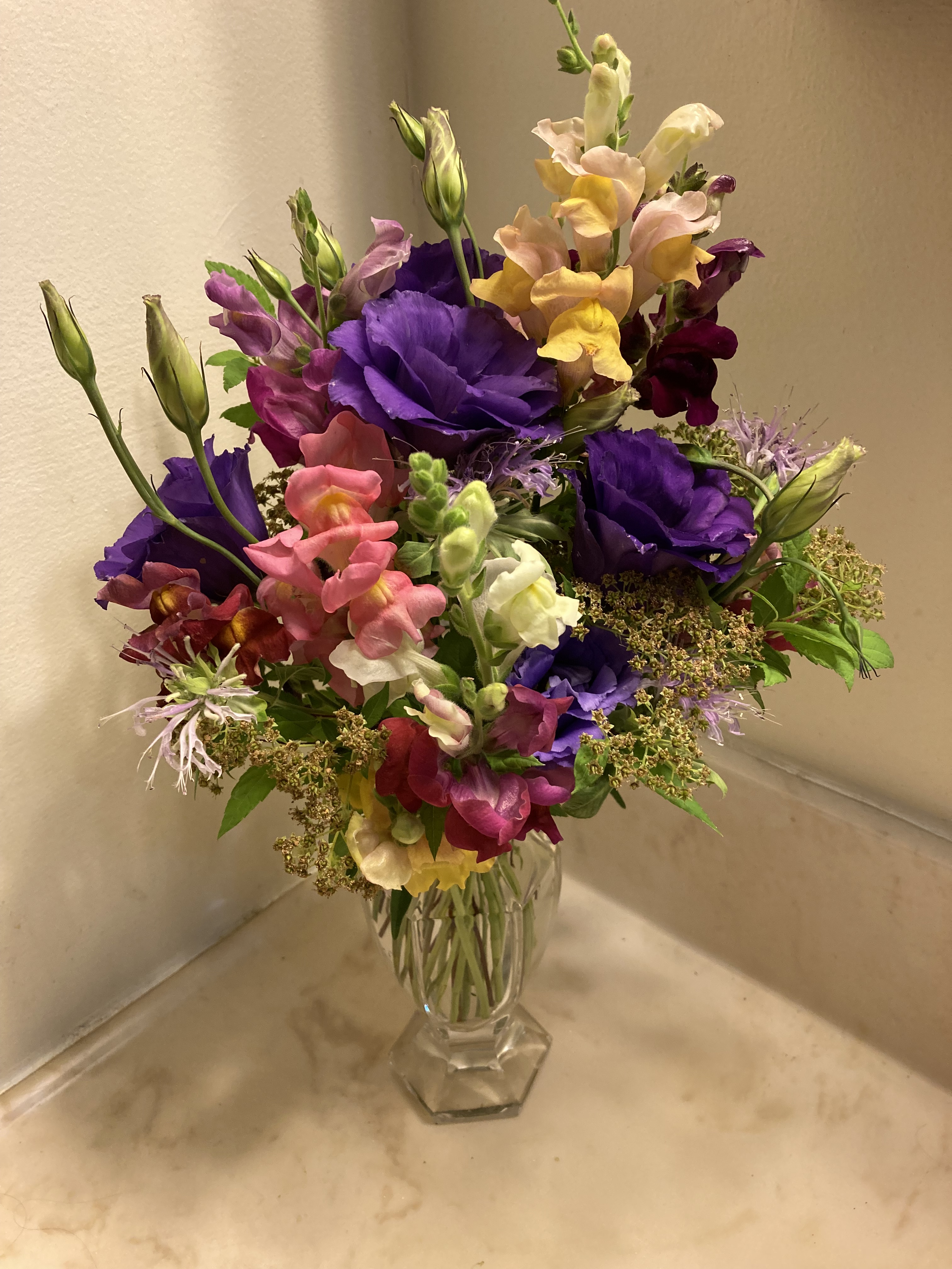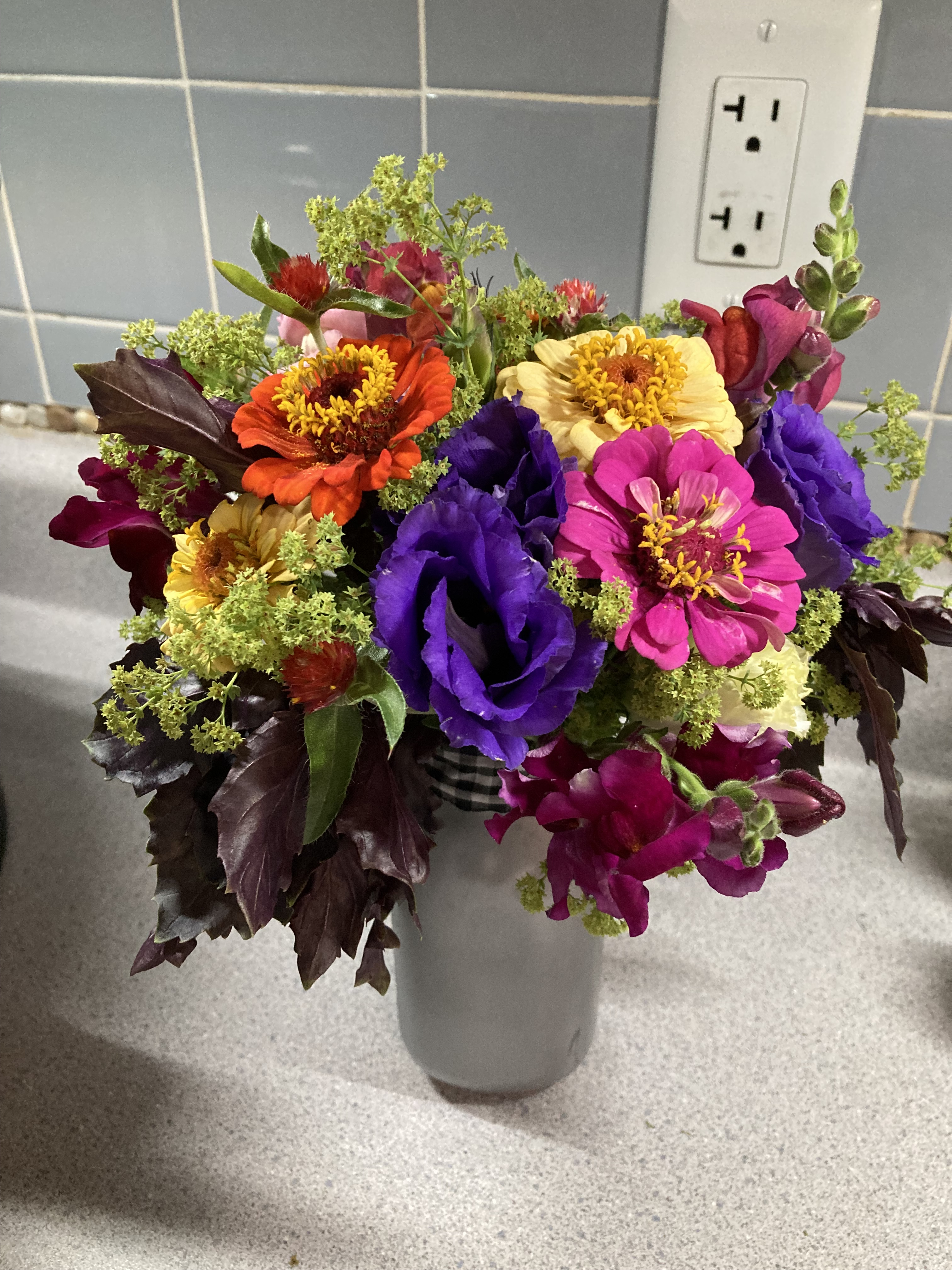 I grow a wide variety of flowers, mostly from seeds started in my basement grow set-up. This is my 4th year growing, with lisianthus and zinnias being two of my favorites.