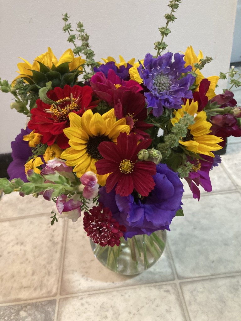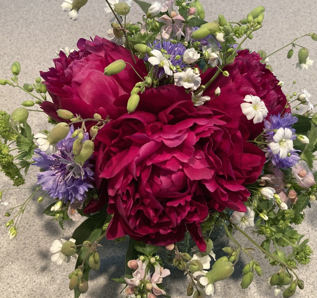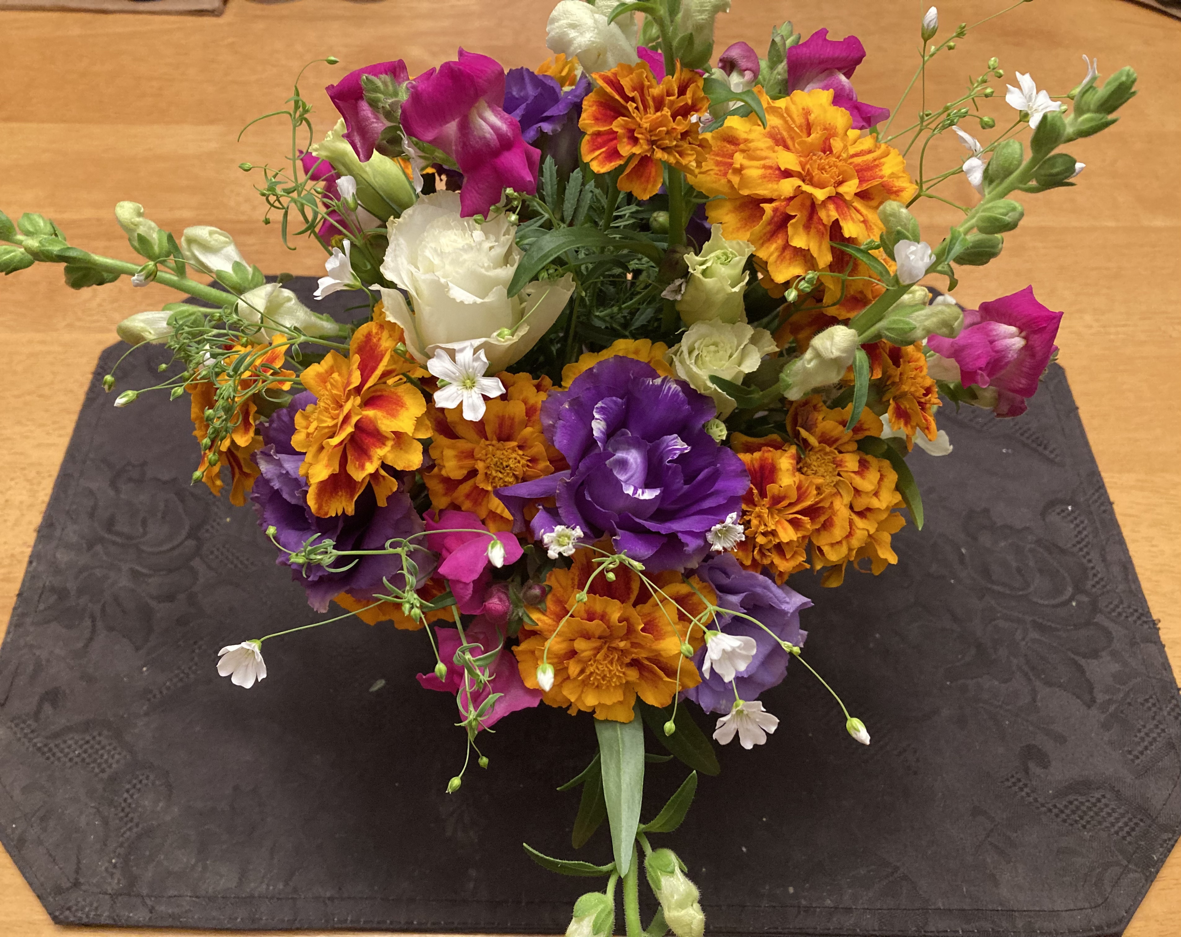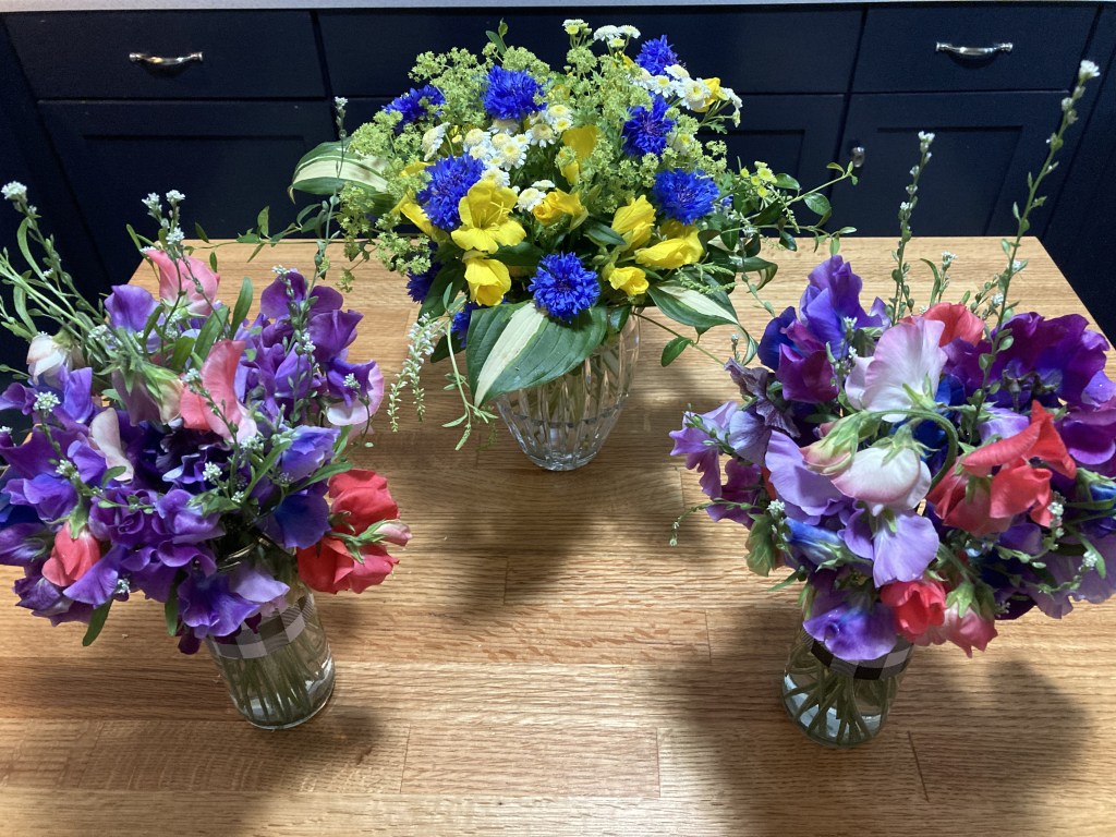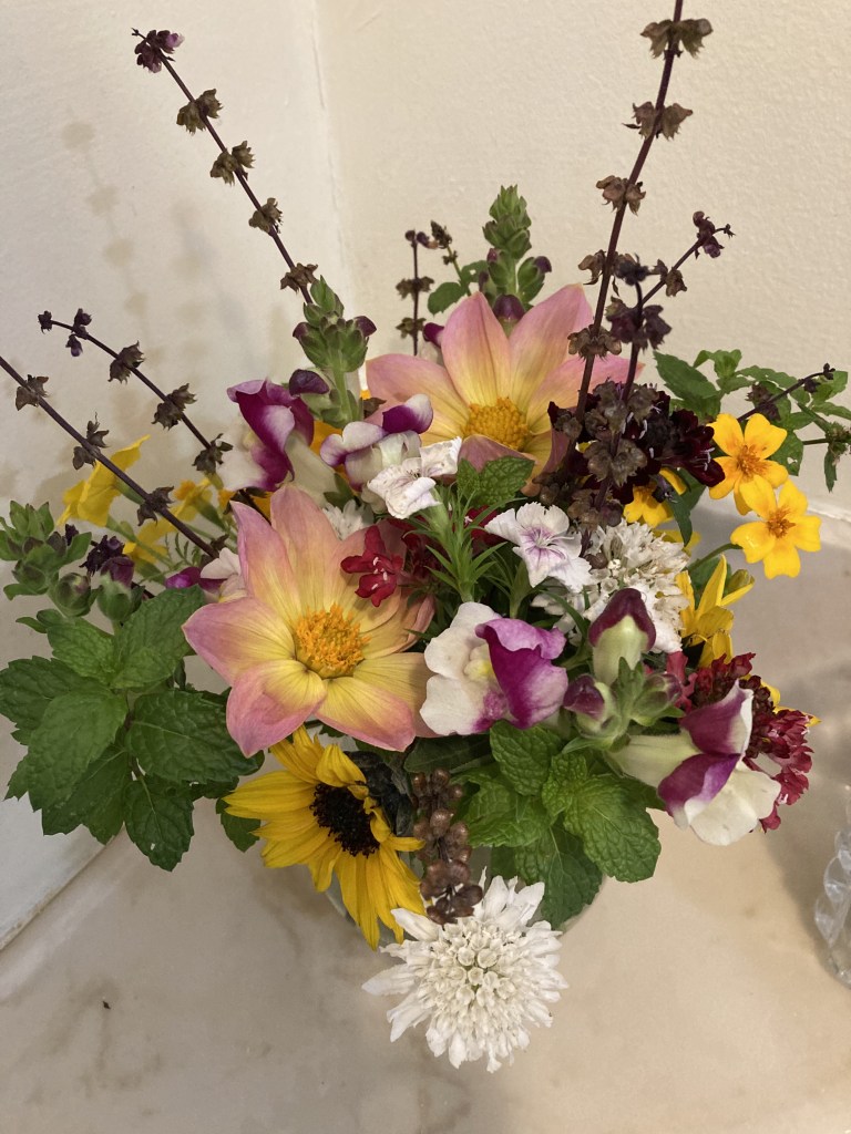 I grow both landscape flower beds with many native perennials, as well as production beds for cutting. Hummingbirds and Bees are always in mind – with plantings that feed the birds year-round. My spaces are pollinator and wildlife-friendly. I avoid the use of pesticides and chemicals as much as possible.